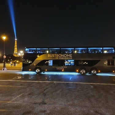 Dans une atmosphère élégante et chaleureuse, le Bustronome vous garantit un moment hors du temps, où confort et raffinement se conjuguent à la perfection. Une expérience unique à vivre en couple, entre amis ou pour une occasion spéciale.